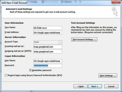 Her en guide til oprettelse af Google firma e-mail i Outlook.